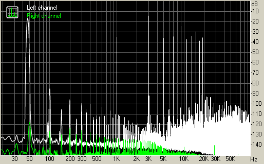 Перегрузка на входе звуковой карты как правило отличается более ровной полкой гармоник без плавного завала в высокочастотной области. Замер с перегрузкой на выходе усилителя может быть полезен только в тех случаях, когда надо показать, что на определенной мощности усилитель не дотягивает до заявленных производителем данных.