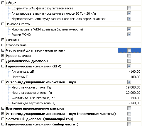 По умолчанию, RMAA может сохранять запись теста в wave формате, но бесплатная версия не позволяет вносить корректировки в тестовый сигнал, выбирать другие частоты и уровни сигнала.