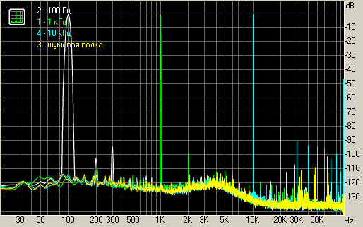 Как видно, во всех случаях оценку искажений можно сделать только от 100 Гц.