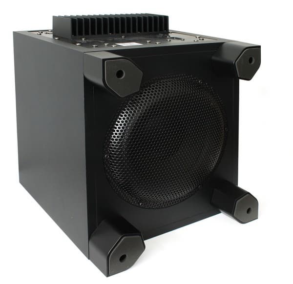 Габариты корпуса сабвуфера составляют 30×35×34 сантиметров. Акустическим оформлением сабвуфера является схема с фазоинвертором. Отверстие ФИ выведено на переднюю панель. Диффузор НЧ-динамика выведен наружу и направлен в пол, таким образом, являясь акустически нагруженным. Диаметр диффузора составляет всего 18 сантиметров. Гибкий подвес изготовлен из резины и тактильно жесткий. Металлическая решетка предохраняет диффузор динамика от механических повреждений.