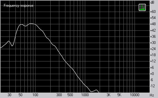 Измерения АЧХ, проведенные перед отверстием ФИ, показывают нам, что сабвуфер диапазон 20 Гц — 30 Гц не захватывает.