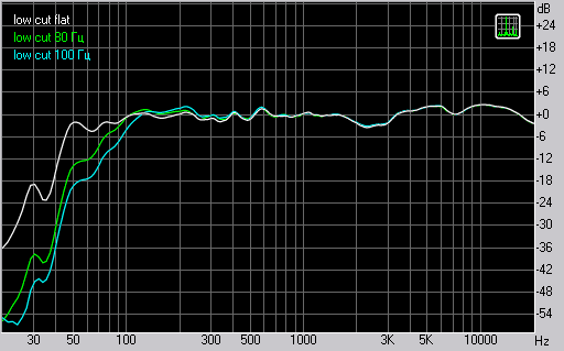 измеренный при разных положениях тумблера Low Cut