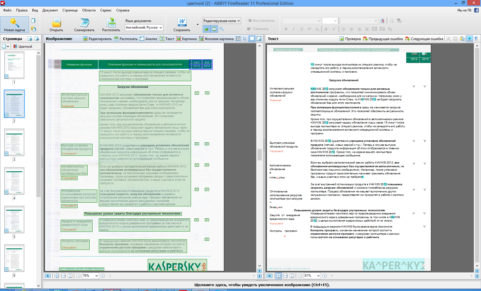 | Документ | FineReader 11 Professional | FineReader 12 Professional | ||