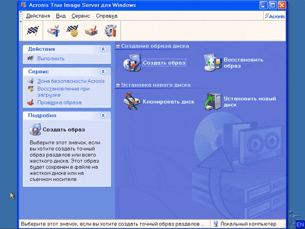 С помощью Acronis True Image Server 8.0 можно сохранить точную копию данных, хранящихся на винчестере. Для сохранения данных не требуется перезагрузки компьютера - создание образа происходит прямо из операционной системы. Можно создать инкрементный образ, то есть, сохранить только изменения, которые произошли после создания предыдущего образа. В последствии, при необходимости, данные могут быть восстановлены именно в том виде и состоянии, которое было на момент создания образа. Это помогает восстановить состояние операционной системы и значительно сократить время, которое может быть затрачено на устранение последствий аварии.