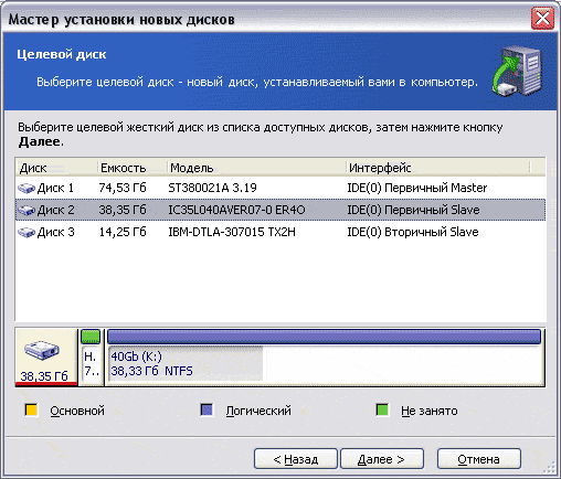 С помощью мастера установки новых дисков можно подготовить к использованию новый жёсткий диск (разметить и отформатировать его).