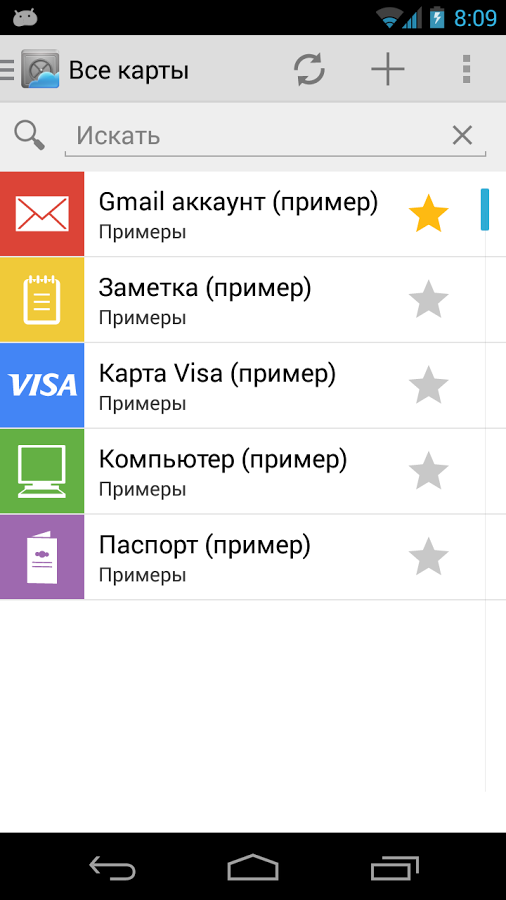 Есть поиск по мере ввода, а вот упорядочивать информацию по тегам или категориям нельзя. Поэтому остается использовать стандартные, не всегда полезные группы, вроде «Веб-входы», «Банковские счета».