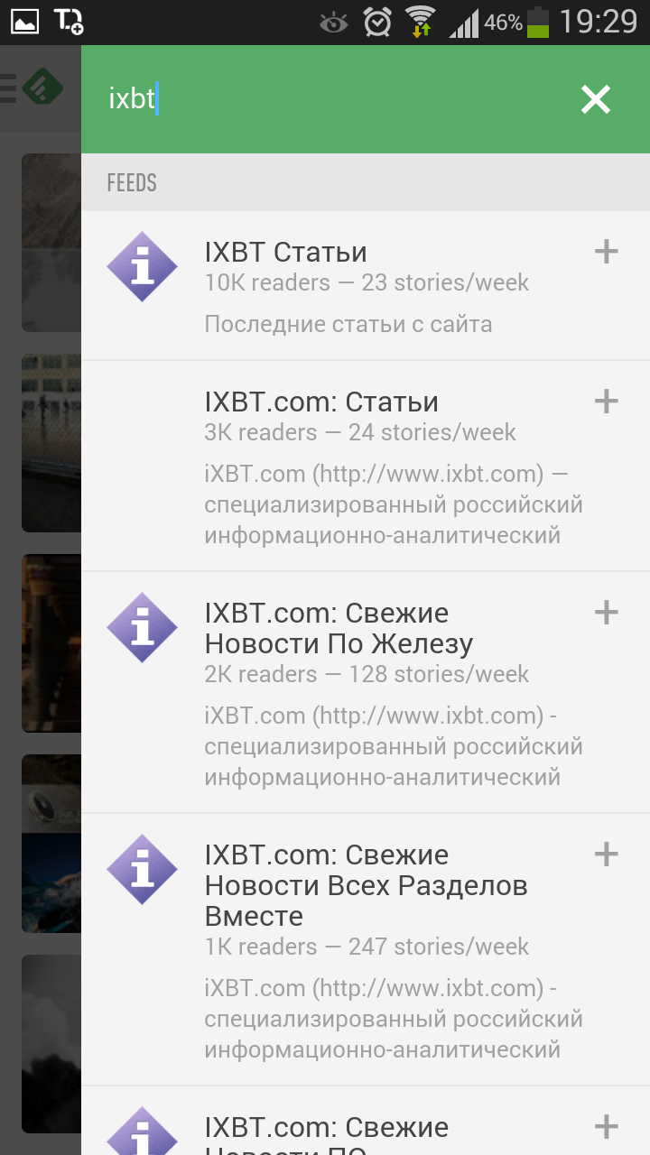 Помимо синхронизации, добавить необходимые ленты можно через поиск. Есть также коллекции — подборки ресурсов на определенные тематики. Благодаря им, можно подписаться на интересный пользователю контент. По коллекциям также доступен поиск — в отличие от поиска по содержанию лент: реализовать последнее технически сложнее. В описании приложения на Google Play упоминается, что ленты можно упорядочить по папкам, однако по факту такой возможности не нашлось.