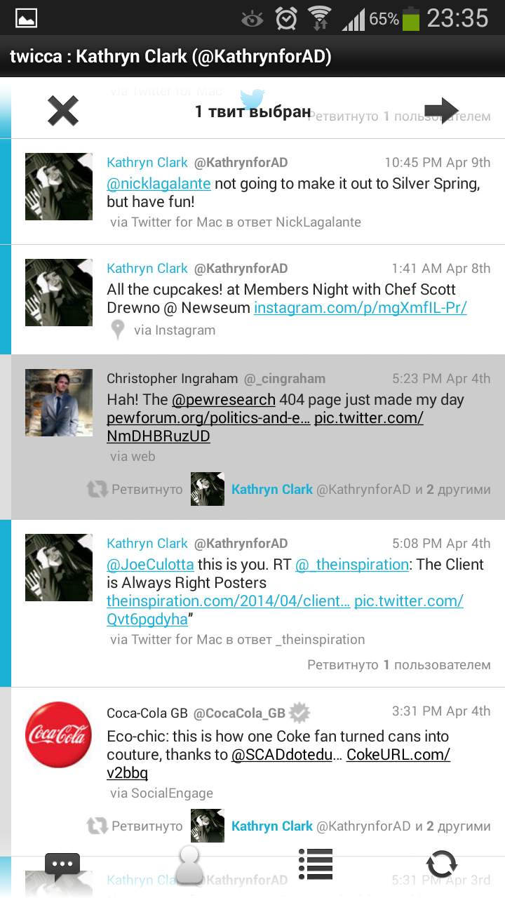 Twidere — бесплатный клиент, выполненный в стиле Ice Cream Sandwich, с возможностью тонкой настройки отображения твитов.