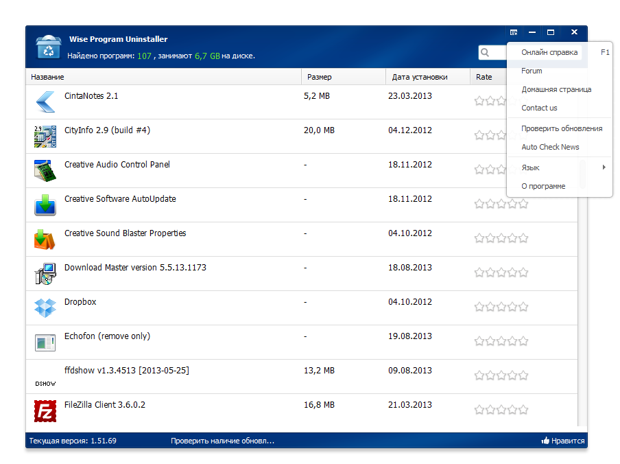Интерфейс Wise Program Uninstaller