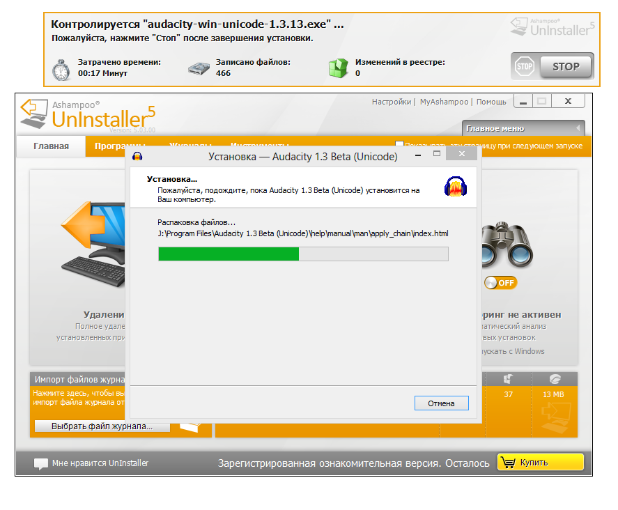 Мониторинг позволяет сделать снимок изменений, произведенных инсталлятором, в реальном времени. Вся информация в дальнейшем используется для полного удаления подконтрольной программы. Запустить мониторинг можно как вручную, так и в фоновом режиме — изменения будут фиксироваться в журналах автоматически.