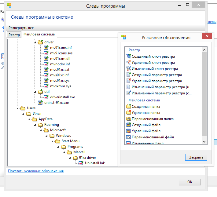 Все команды деинсталляции сосредоточены в меню «Действия»: стандартная деинсталляция, удаление записи и принудительное удаление. В нагрузку, для более тщательного устранения следов, прилагается Мастер удаления. Зачистка предусматривает удаление файлов, оставленных в папках Program Files, Application Data, ярлыков, ключей Реестра и т. д. Нужно отметить, что удаление следов от программ доступно только в зарегистрированной версии, без этого возможен лишь просмотр оставшихся после деинсталляции элементов.