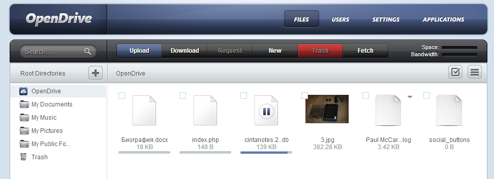 Интерфейс позволяет загружать и скачивать файлы, причем кроме обычной загрузки, предусмотрена пакетная передача папок. Веб-интерфейс позволяет сортировать, искать файлы, использовать предосмотр — он, правда, не отличается особым удобством и отзывчивостью.