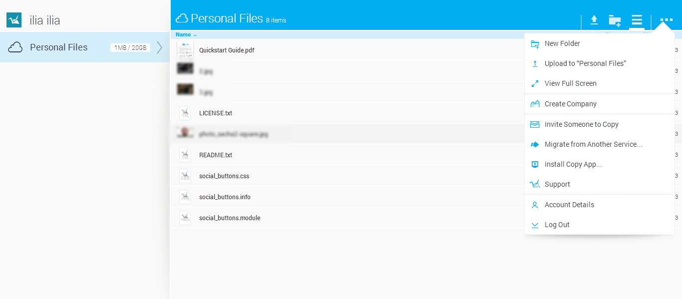 На данный момент сервис существует в двух версиях, одна из них отличается обновленным интерфейсом. Вообще, веб-версия поддерживает перетаскивание и пакетную загрузку данных. Благодаря интеграции с Mover, возможен перенос файлов с Box, Google Drive, Dropbox и других сервисов на Copy.