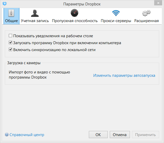 После установки программы пользователь получает в свое распоряжение папку, синхронизируемую с сервером. При желании, можно включить синхронизацию по локальной сети. Также доступны интеграция с Проводником и функции публикации ссылки в Интернете через контекстное меню. Десктоп-приложение содержит среди опций выборочную синхронизацию, управление скоростью скачивания и загрузки на сервер Dropbox.