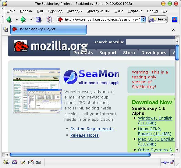 Разработчик: SeaMonkey Team, при поддержке Mozilla Foundation