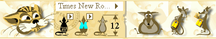Следующая группа мышей отвечает за начертание используемого шрифта. Вы можете установить шрифт полужирный, наклонный либо с подчеркиванием. Непонятно почему, но последние две возможности в демоверсии отключены. Далее находятся два кусочка сыра, один из которых устанавливает выравнивание текста по левой границе (кусочек сыра объеден с правой стороны), либо выравнивание по центру (как вы уже догадались, кусочек сыра, отвечающий за это, равномерно обгрызен с двух сторон). Жаль, что отсутствует возможность выравнивания по правой стороне и равномерное выравнивание по ширине.