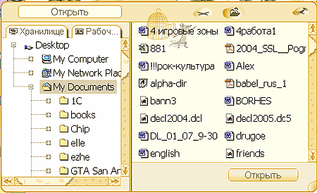 Ниже названных полей находится панель кнопок управления. Самая левая кнопка - кошачья мордочка, умеющая закатывать глазки при наведении на нее мышки. Что кот при этом думает, не ясно, но если щелкнуть по нему, то откроется панель управления с большим количеством мышей. Здесь находятся кнопки управления файлами - открытие файла (мышка выходит из клетки) - по умолчанию в открывающемся окне выбора файла две закладки. Одна из них показывает файлы, находящиеся на десктопе. Вторая - файловое хранилище редактора. Как и в обычном редакторе, вы можете перемещаться по папкам, создавать новые, удалять файлы.