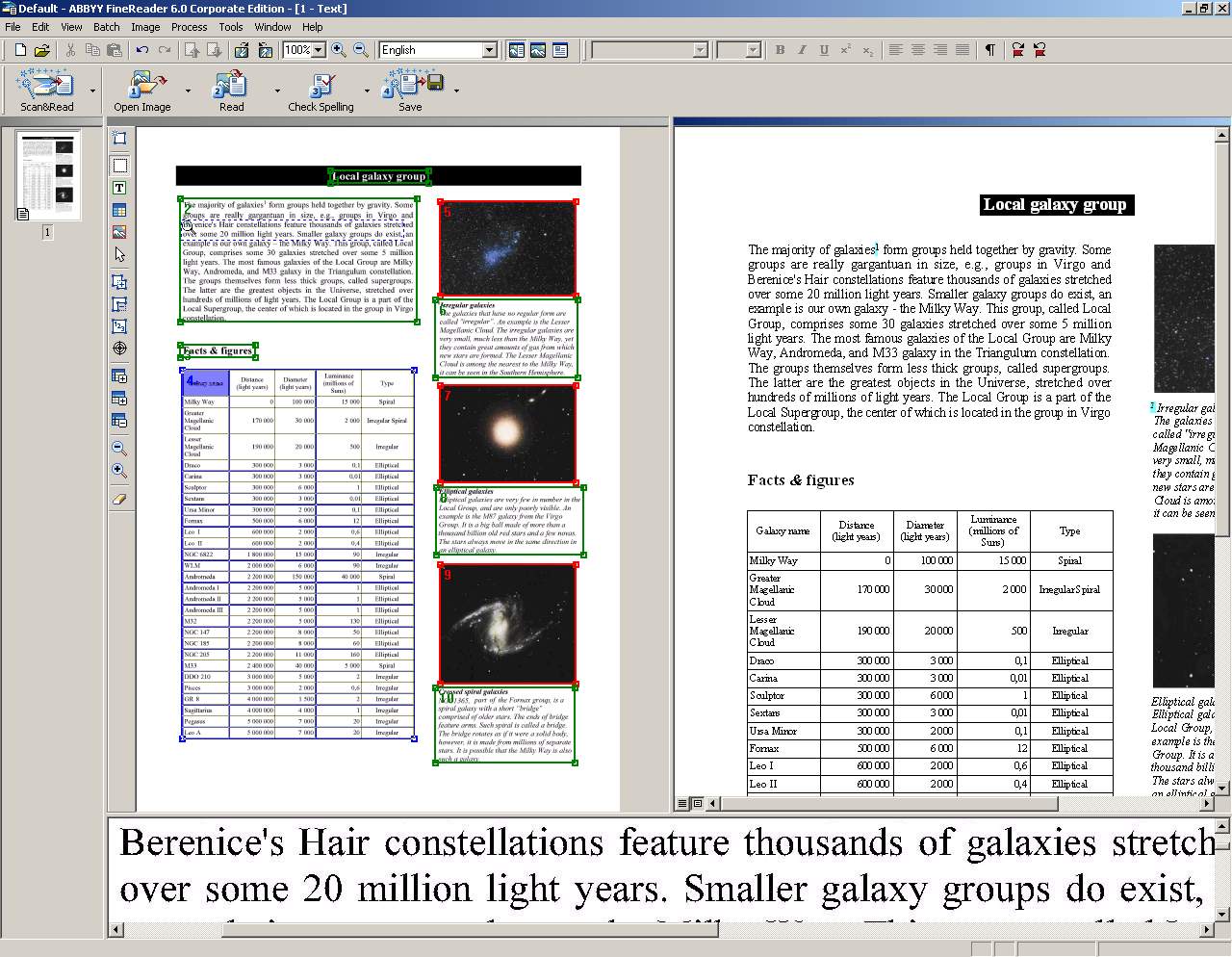 Была значительно усовершенствована и система предварительного редактирования распознанных страниц. Внутренний редактор теперь представлял собой не просто окно редактирования текста, а полноценное WYSIWYG-пространство, где отображался точный макет комплексного итогового документа (например, многоколоночный текст, отдельные текстовые блоки и так далее).
