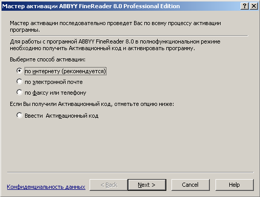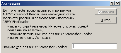 После регистрации вас также попросят провести еще одну активацию, которая позволит работать с программой ABBYY Screenshot Reader, поставляющейся в составе FineReader 8.0. Об этой утилите мы расскажем немного позднее.