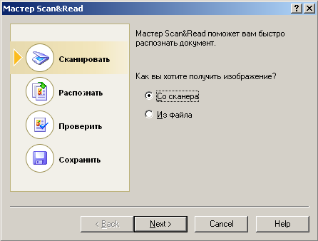 Для тех, кто не знаком с процессом сканирования и распознавания документов, наиболее оптимальным вариантом будет воспользоваться помощью «Мастера Scan&read», он пошагово проведёт через все этапы ввода и распознавания данных, в зависимости от исходного документа и требуемого результата.