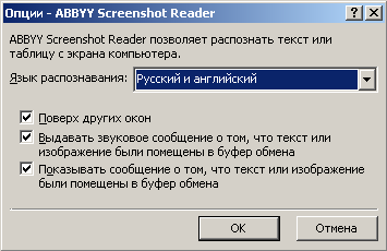 Говоря простым языком, ABBYY Screenshot Reader - приложение, которое позволяет распознавать текст с экрана компьютера. Для запуска ABBYY Screenshot Reader в меню Пуск выберите Программы -> ABBYY FineReader 8.0 -> ABBYY Screenshot Reader.