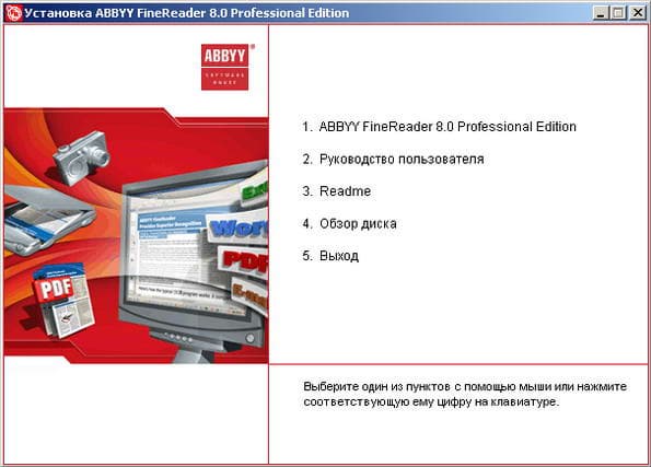 Установка ABBYY FineReader проста и достаточно стандартна. Вставьте установочный диск в дисковод, программа установки должна запуститься автоматически.