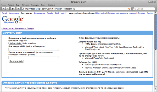 Документы Google являются смелой, перспективной разработкой. Работа над офисными документами все больше требует коллективных усилий, а в этом случае классические приложения оказываются в заведомо невыгодном положении. Впрочем, такие компании, как Microsoft, предлагают решение данной проблемы, предлагая к офисному пакету дополнение в виде сервиса Live Workspace. Но в этом случае получается уже нагромождение двух продуктов. Во-первых, вы должны купить и установить на локальной машине громоздкий пакет. Во-вторых, необходима регистрация на сервисе, который также потребует некоторое время на изучение. Путь Google намного проще. Бесплатный сервис, работающий под единой учетной записью. Интерфейс не несет в себе ничего революционного, он прост и тесно переплетается с другими сервисами Google.