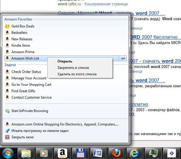 Прикрепленный на таскбар сайт — это не просто ссылка. Программисты могут встроить дополнительную функциональность, она показывается во всплывающем меню, которое будет появляться при нажатии правой кнопки. Это могут быть наиболее часто посещаемые разделы, это могут быть избранные ссылки на разделы сайта, например, на профиль и новости, это даже могут быть уведомления и напоминания! И все это находится не внутри браузера, а на таскбаре Windows, и доступно в любой момент. Кстати, сайты можно прицеплять не только в таскбар, но и в меню «Пуск».