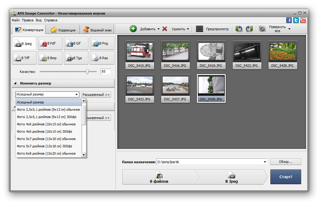 | AVS Image Converter | Shareware | Да | Да | 20+ | 8 |