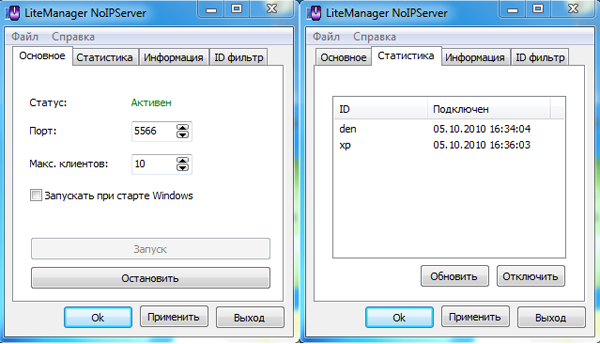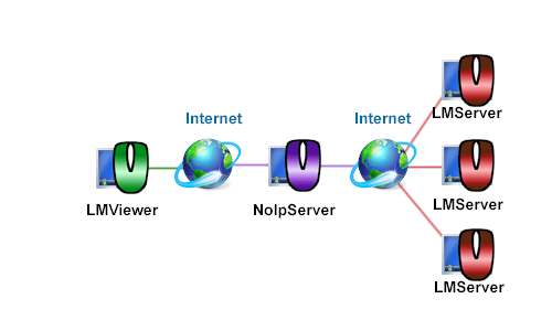 Для работы через NoIpServer достаточно запустить его на компьютере доступном как для LiteManager Viewer так и для LiteManager Server. После чего на LiteManager Server необходимо создать обратное соединение к NoIPServer, указав свой ID, а на LiteManager Viewer добавить новое соединение к NoIpServer указав ID требуемого LiteManager Server.