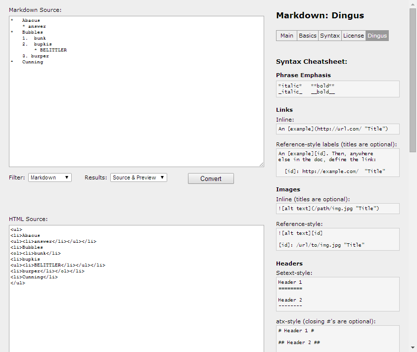 Markdown: Dingus