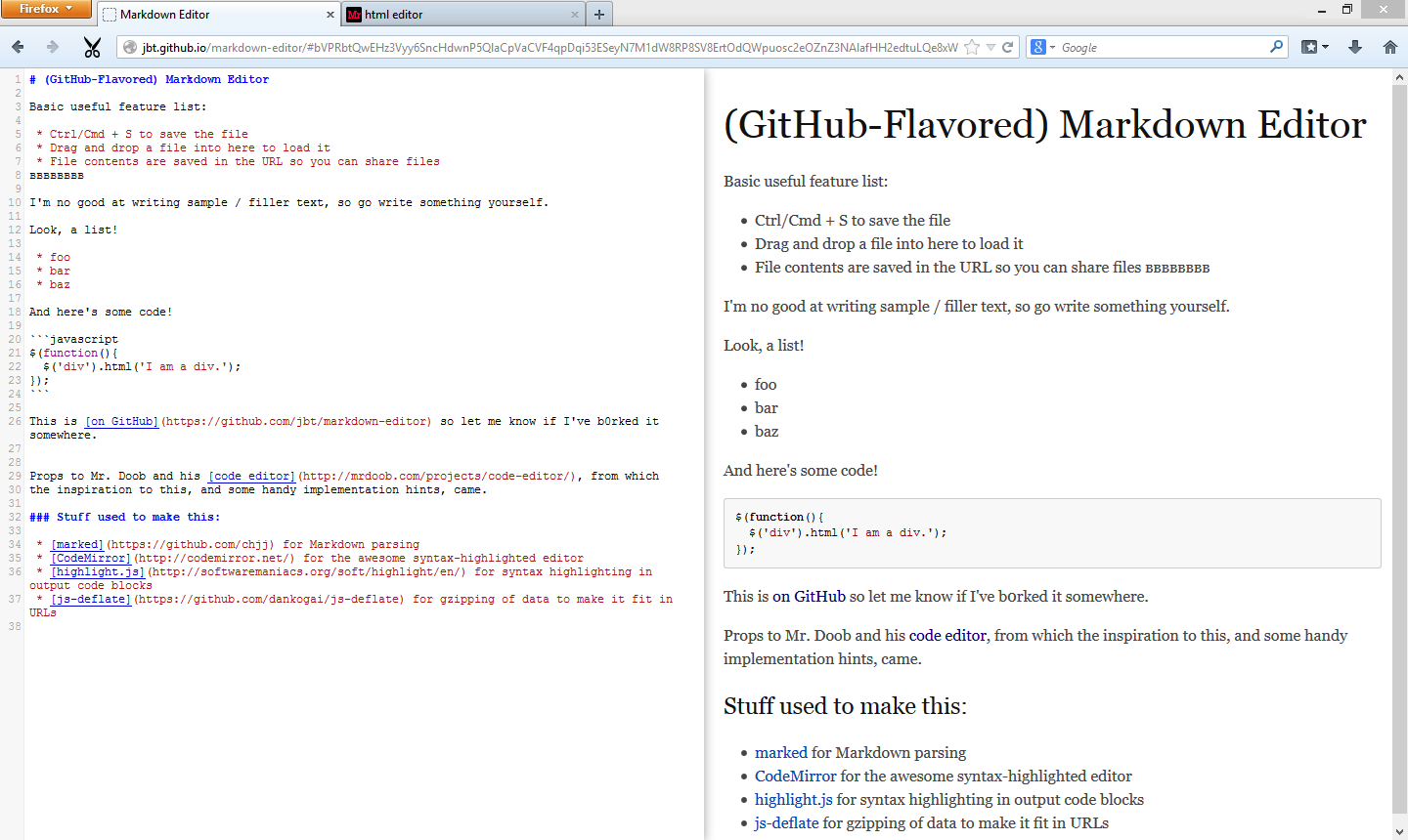 Домашняя страница: http://lab.lepture.com/editor/