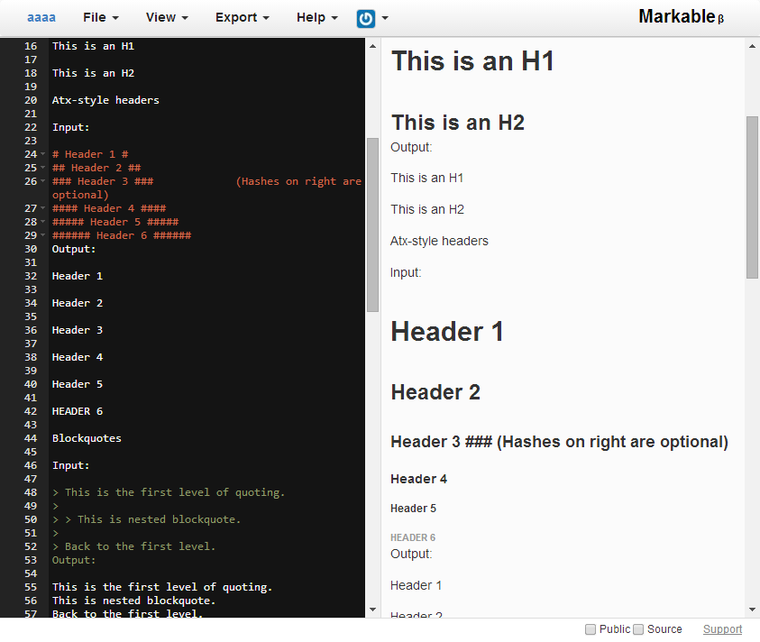 Markable — популярный редактор с поддержкой разметки Markdown и Markdown extra. Создав учетную запись, можно использовать сервис не только для редактирования, но и хранения заметок.