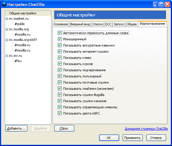 Чтобы поучаствовать в какой-нибудь беседе, достаточно щелкнуть в браузере на ссылке вида «irc://», и Chatzilla автоматически подключится к нужному серверу, зайдет на необходимый IRC-канал. Если есть желание, в настройках программы можно указать автоматическое подключение к текущему каналу при старте.