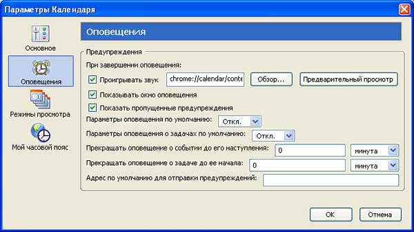 В Mozilla Sunbird возможен еще один способ уведомления - по электронной почте. Данный способ очень удобен в том случае, если пользователь проводит лишь часть времени за своим компьютером. Задав уведомление по электронной почте, вы сможете быть уверены в том, что органайзер «найдет» вас, где бы вы ни были, напомнив о ваших делах.