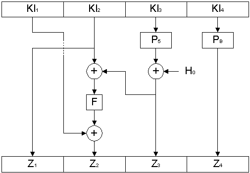 - Вычисляются байты выходного значения: yl = P(h(xl)где <<< – операция циклического сдвига на указанное число бит влево,