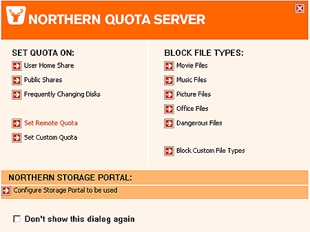 Рассмотрим вкратце возможности, предоставляемые отдельными модулями системы, и начнем с Northern Quota Server. Этот модуль предназначен для управления квотами на использование дискового пространства и предотвращения нецелевого их использования. Ограничения могут быть назначены на личные разделы пользователей, на общедоступные разделы, на разделы (и диски), расположенные на удаленных серверах, либо на размещение в разделах сервера файлов определенного типа (например, мультимедийных, графики и так далее).