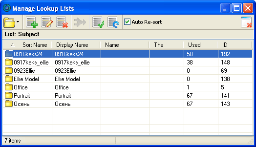 Всеми типами меток можно управлять с помощью отдельного инструмента Manage Lookup Lists. Например, вы можете ввести имена и фамилии всех родственников и знакомых, кто хотя бы раз был осчастливлен появлением в видоискателе вашей камеры. Каждому контакту можно указать адрес домашней страницы.