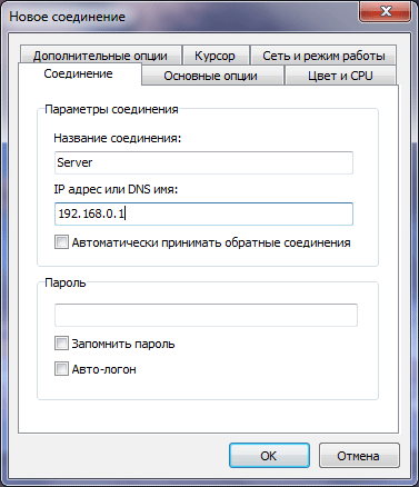 Не стоит пренебрегать безопасностью, особенно, если компьютер будет доступен из сети Интернет! Обязательно смените порт, используемый программой по умолчанию, на другой, а также не задавайте простых паролей на сервере, например, 11111111 или 12345678. Задайте более сложный пароль, например, rom2009!x86. Вам не придется набирать его каждый раз при установке соединения. В программе есть настройка, позволяющая сохранять пароль.