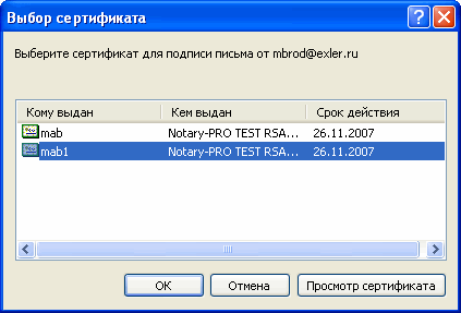 Итак, если вы будете подписывать свое письмо, то после того, как вы нажмете кнопку "Сохранить" или "Отправить", будет вызван диалог выбора сертификата, на котором вы будете выполнять подпись. Обратите внимание, что сертификат привязан к почтовому адресу. Поэтому, если почтовый адрес, с которого вы пишете и отправляете письмо, отличается от того, что включен в сертификат, почтовый клиент не сможет подписать письмо. Если адреса совпадают, письмо будет подписано и отправится вашему респонденту вместе с сертификатом и открытым ключом. С их помощью ваш респондент сможет проверить подлинность подписи (не изменилось ли письмо во время доставки) и убедиться, что именно вы подписали это письмо. Для того чтобы использовать этот сертификат и ключ для шифрования писем в ваш адрес, ваш респондент должен будет импортировать полученный сертификат в хранилище. Аналогичным образом он пришлет вам свой сертификат, после чего вы сможете не только подписывать письма, но и шифровать их в адрес друг друга.