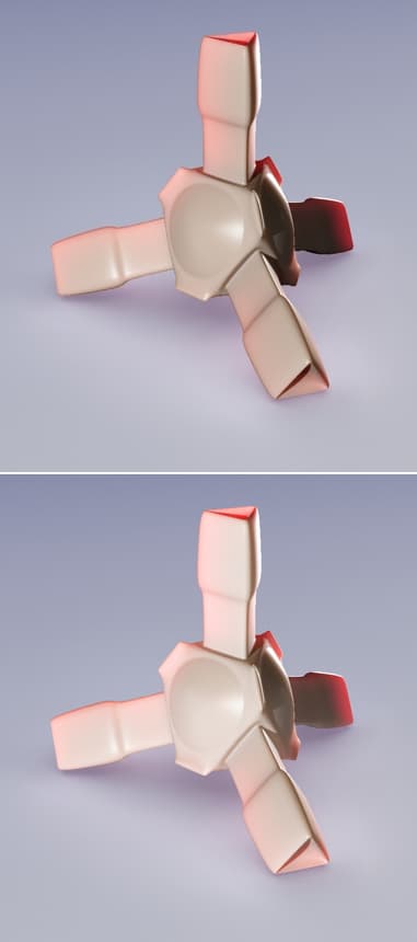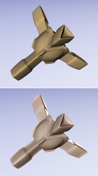 Вверху — объект со стандартным материалом (Blinn),