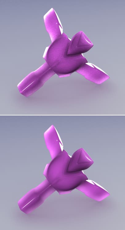 Передняя поверхность преимущественно определяет визуальное представление подповерхностного рассеяния. Задняя поверхность помогает реализовать эмуляцию рассеяния в объеме — подсвечивает переднюю поверхность рассеянным светом. Сила проявления этого эффекта зависит от расстояния между передней и задней поверхностями и некоторых настроечных параметров материала.
