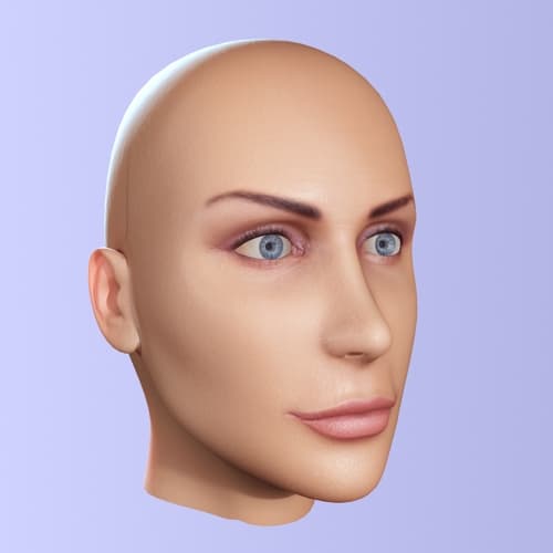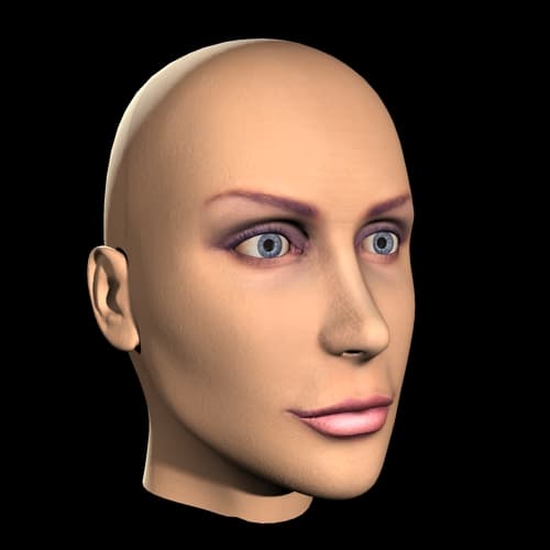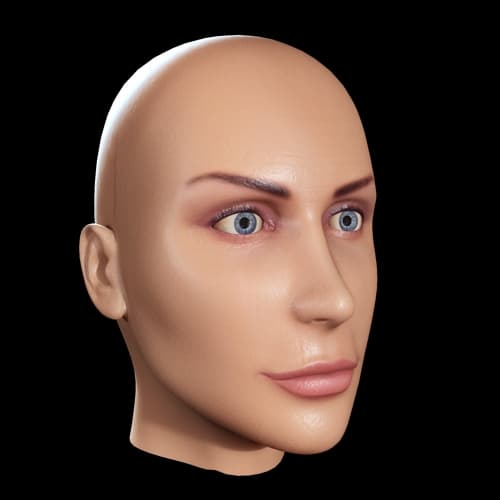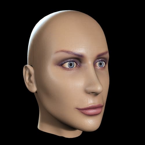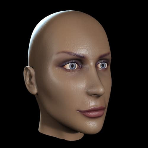 Брови как будто нарисованы на воске. Чтобы устранить этот эффект, я создал еще одну grayscale-карту из карты цвета, оставив на ней только брови и ресницы на белом фоне и отрегулировав значение серого при помощи levels (Photoshop), немного осветлив все изображение. Эту карту я использовал для Overall diffuse coloration.