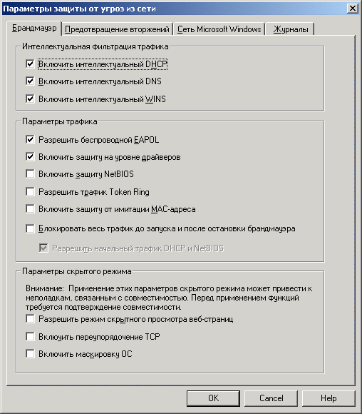 Рисунок 1.11b: Endpoint Protection Client – Network Threat Protection – Настройка алгоритмов анализа и контроля сетевого трафика, защиты от разного класса атак; новая технология, интегрированная в продукт (продублированы на стороне управляющего сервера)