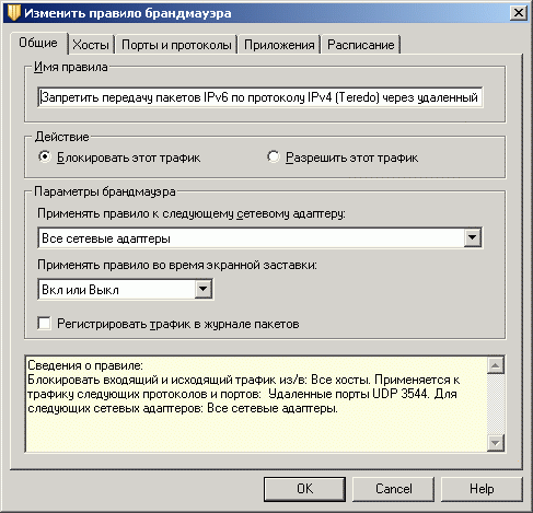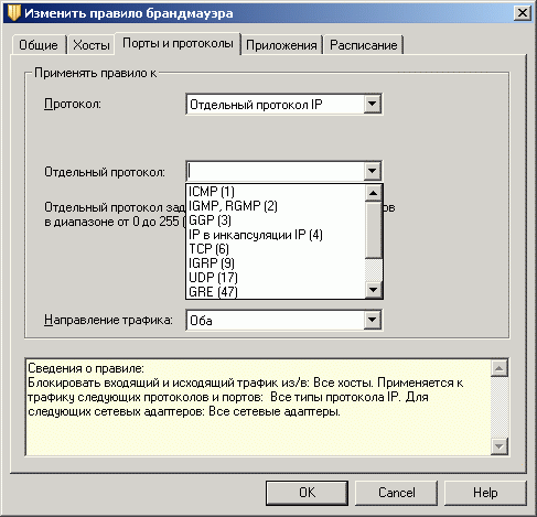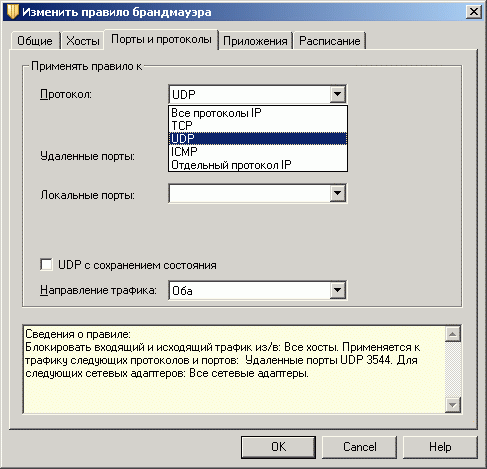 Рисунок 1.13c: Endpoint Protection Client – Network Threat Protection – Configure Firewall Rules – Edit Firewall Rule – Настройки портов и протоколов