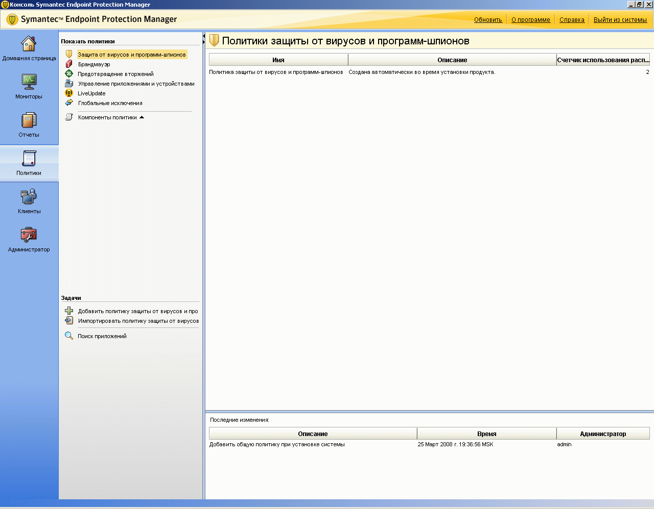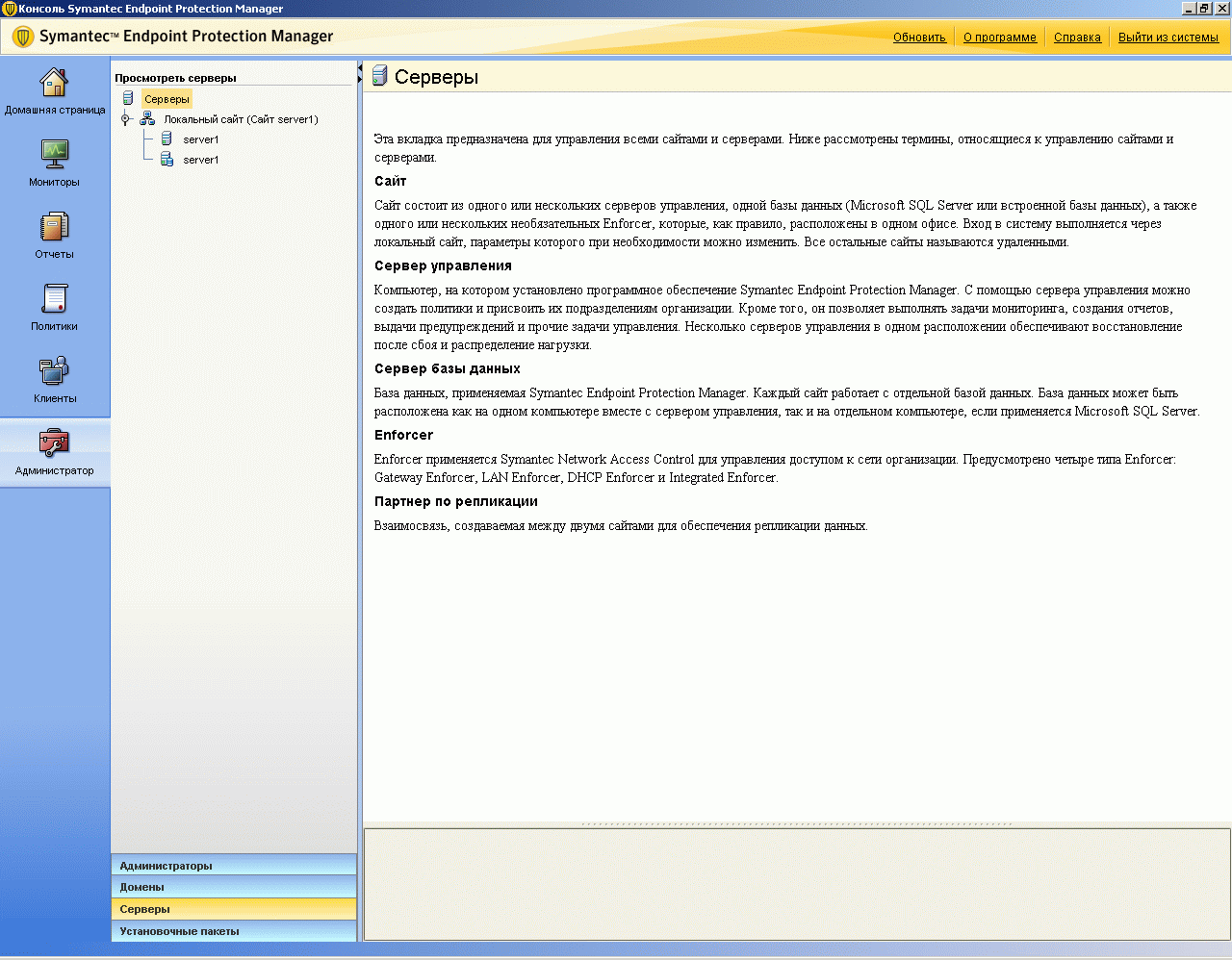 - Symantec Endpoint Protection Manager Console (консоль управления);