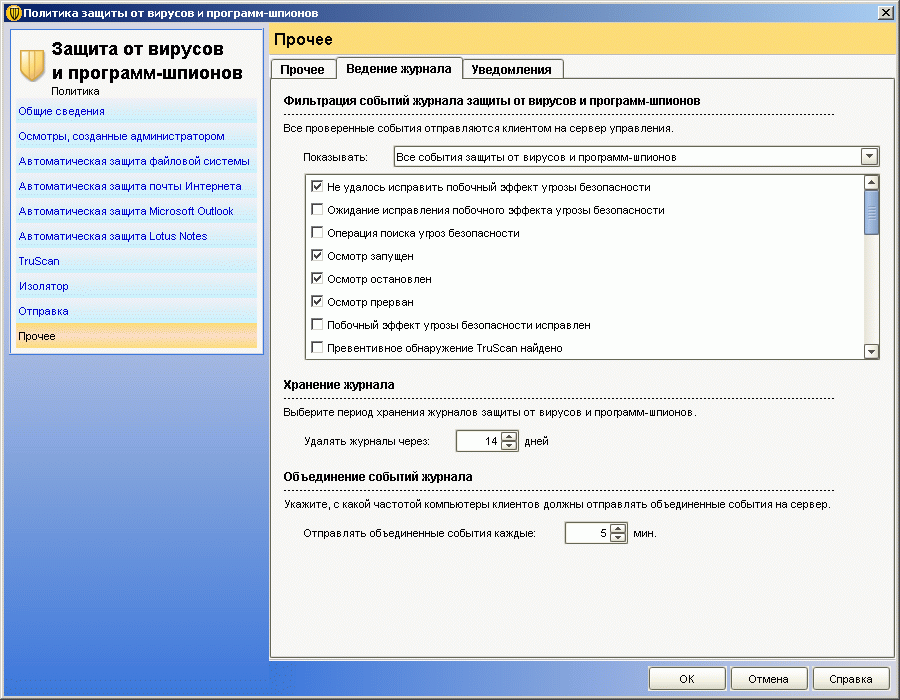 Рисунок 1.10b: Endpoint Protection Client – Proactive Threat Scan Settings – Notifications –Настройка уведомлений об инцидентах проактивной защиты (продублированы на стороне управляющего сервера)