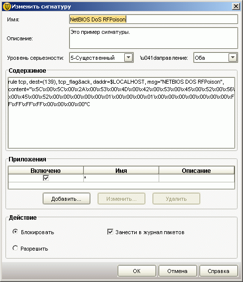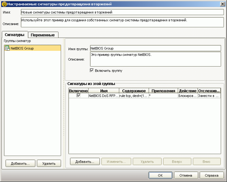 Рисунок 2.11: Endpoint Protection Manager Console – Policies – Intrusion Prevention (IPS) Policy – Custom Intrusion Prevention Signatures – Помимо набора регулярно обновляемых сигнатур IPS, у Администратора системы есть возможность написания собственных сигнатур и их полное или частичное распространение