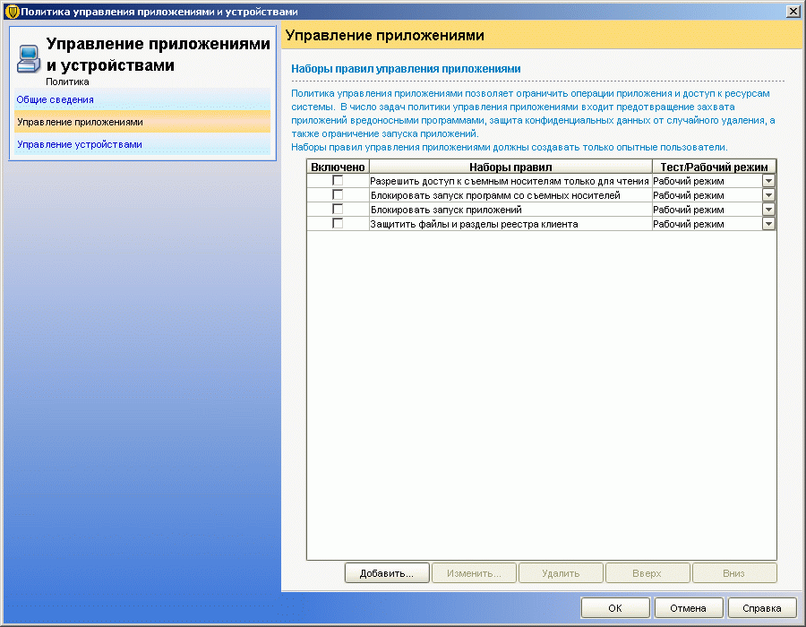 Рисунок 2.13b: Endpoint Protection Manager Console – Policies – Application and Device Control – Device Control – Основной список устройств, который может быть легко расширен