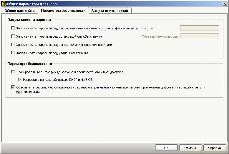 Рисунок 1.6: Endpoint Protection Client – Change settings – Сводная панель настроек компонентов защиты и управления